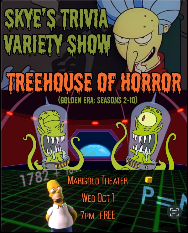 Skye’s Trivia Variety Show finally takes on The Simpsons! We bring you a show entirely focused on the 30 mini-episodes of Treehouse of Horror from Seasons 2-10!