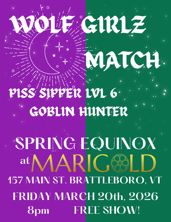 Home / Brattleboro Tickets / Wolf Girlz, Match, Piss Sipper LvL 6, & Goblin Hunter Wolf Girlz, Match, Piss Sipper LvL 6, & Goblin Hunter SKU: 9c3af2e2 Category: Brattleboro Tickets Related products Funk Night – Kris Yunker & Friends 3.5.26 Purchase Tickets Song Swapping with Peter Seigel | Shawn Magee | Luke Concannon Purchase Tickets City Of Alanis Choose price Jar Of Flies – Alice In Chains Acoustic Tribute $10.00 Purchase Tickets
