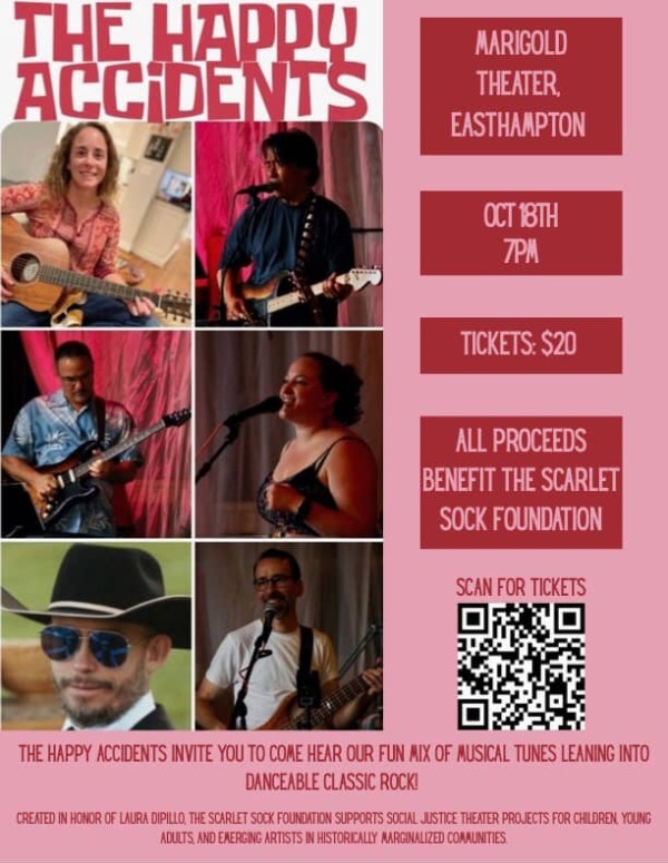 The Scarlet Sock Foundation is teaming up with the Marigold Theater to bring you a sweet night of danceable classic rock tunes trotted out by The Happy Accidents with all proceeds going to benefit social justice theater projects for children, young adults, and emerging artists in historically marginalized communities.